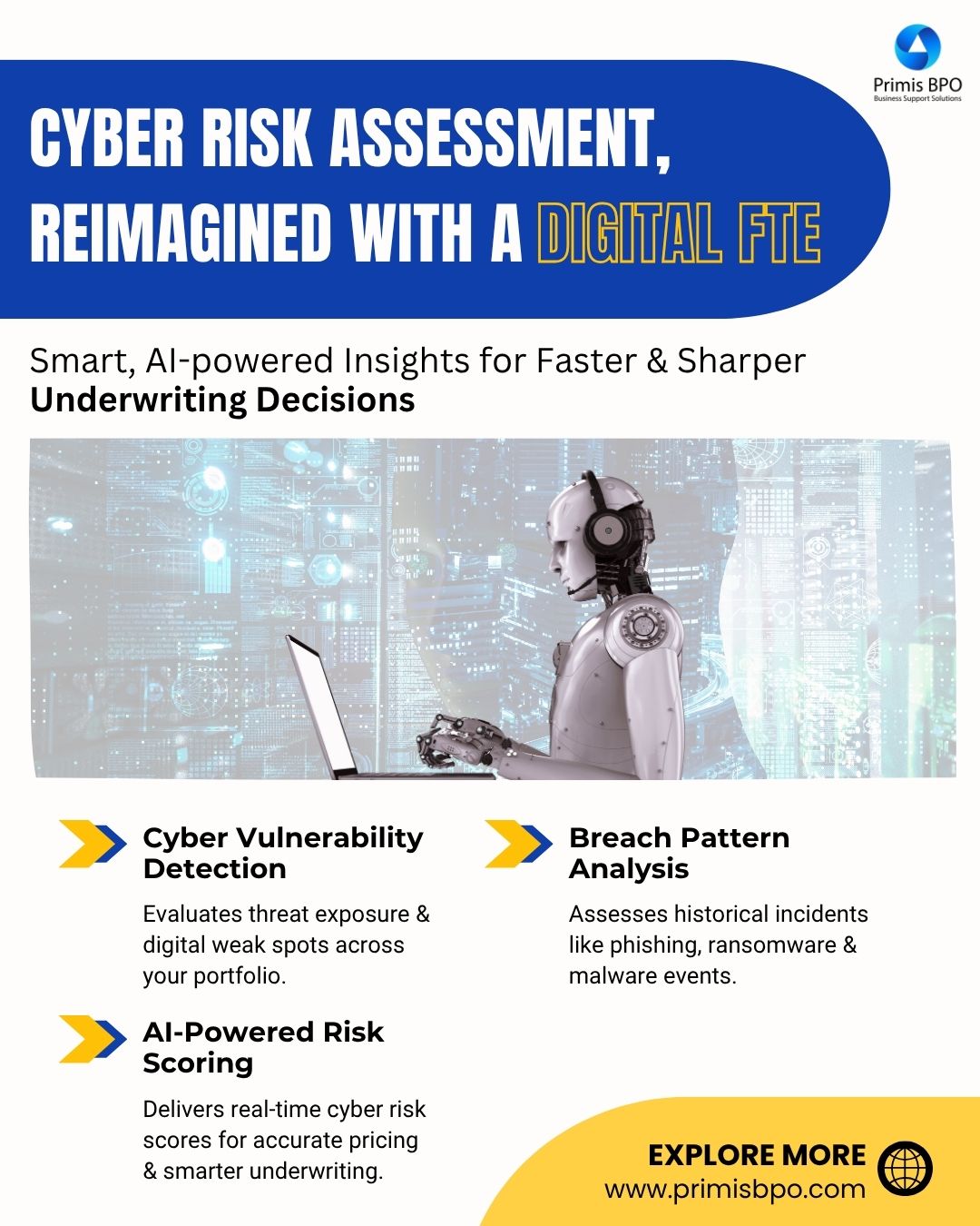 As cyber threats surge, insurers are turning to BPO partners offering Digital FTEs for smarter, faster risk analysis. The Cyber Risk Assessment Agent brings outsourced intelligence to underwriting, combining real-time threat data with scalable decision-making. Learn more→