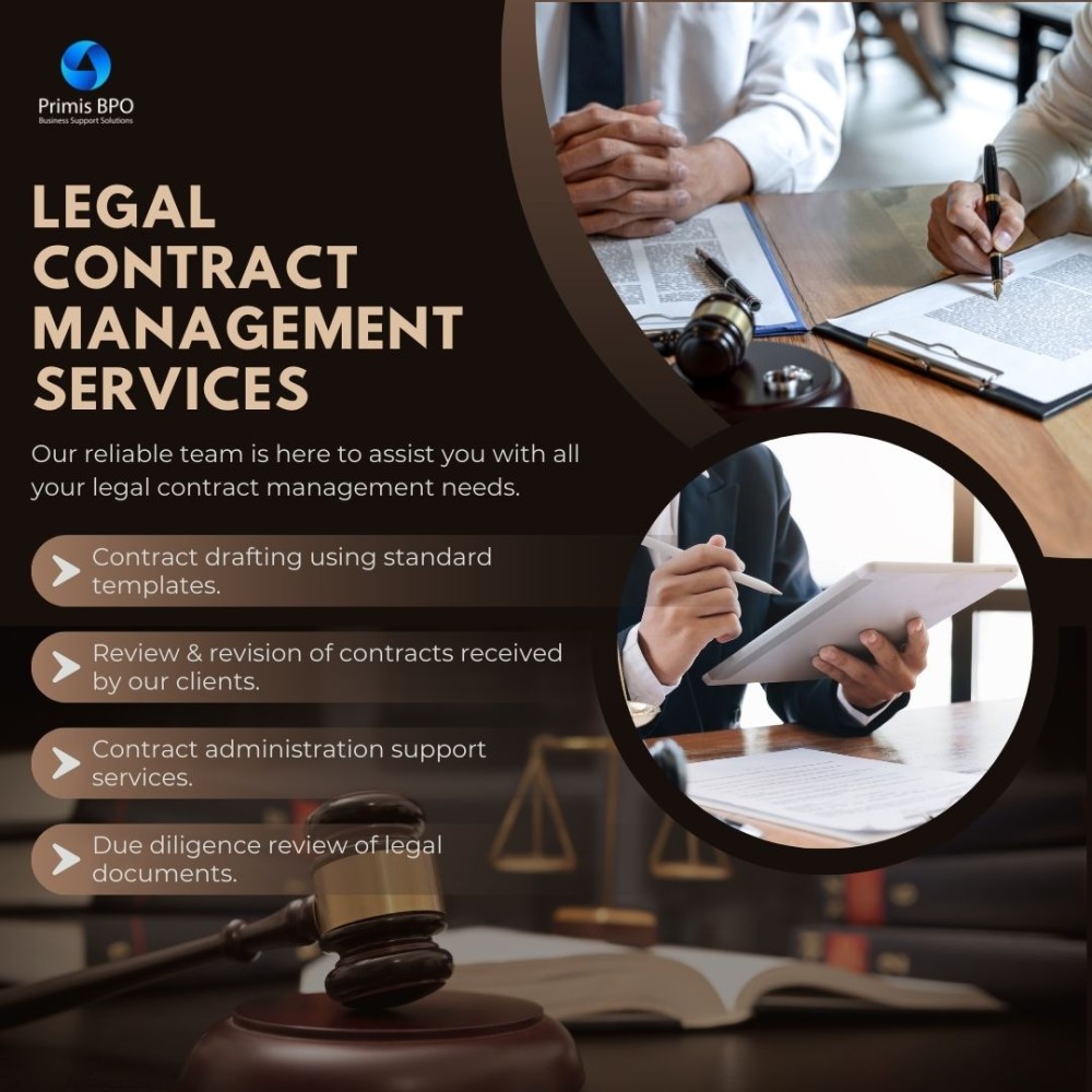 Outsourcing legal contract management to Primis BPO ensures streamlined, accurate, and efficient handling of your contractual processes. By managing tasks like drafting, reviewing, and monitoring contracts, our expert team of lawyers/attorneys empowers legal teams to focus on strategic decision-making and client advocacy. With proven expertise in legal process outsourcing, Primis helps businesses reduce operational costs while maintaining compliance and mitigating risks effectively. Learn more→