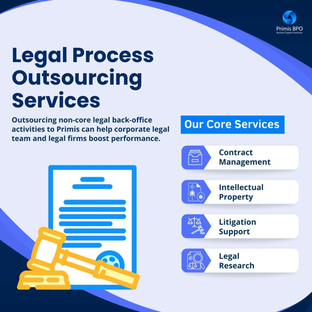 Primis BPO's legal process outsourcing services streamline complex non-core legal back-office tasks, allowing legal teams to focus on core activities and client service. By handling tasks such as Contract Management, Legal Research, Secretarial Support, etc., Primis simplifies operations, reduces overhead costs, and enhances efficiency. This strategic approach boosts performance & helps retain clients by enabling legal professionals to deliver higher value and better service. Learn more→