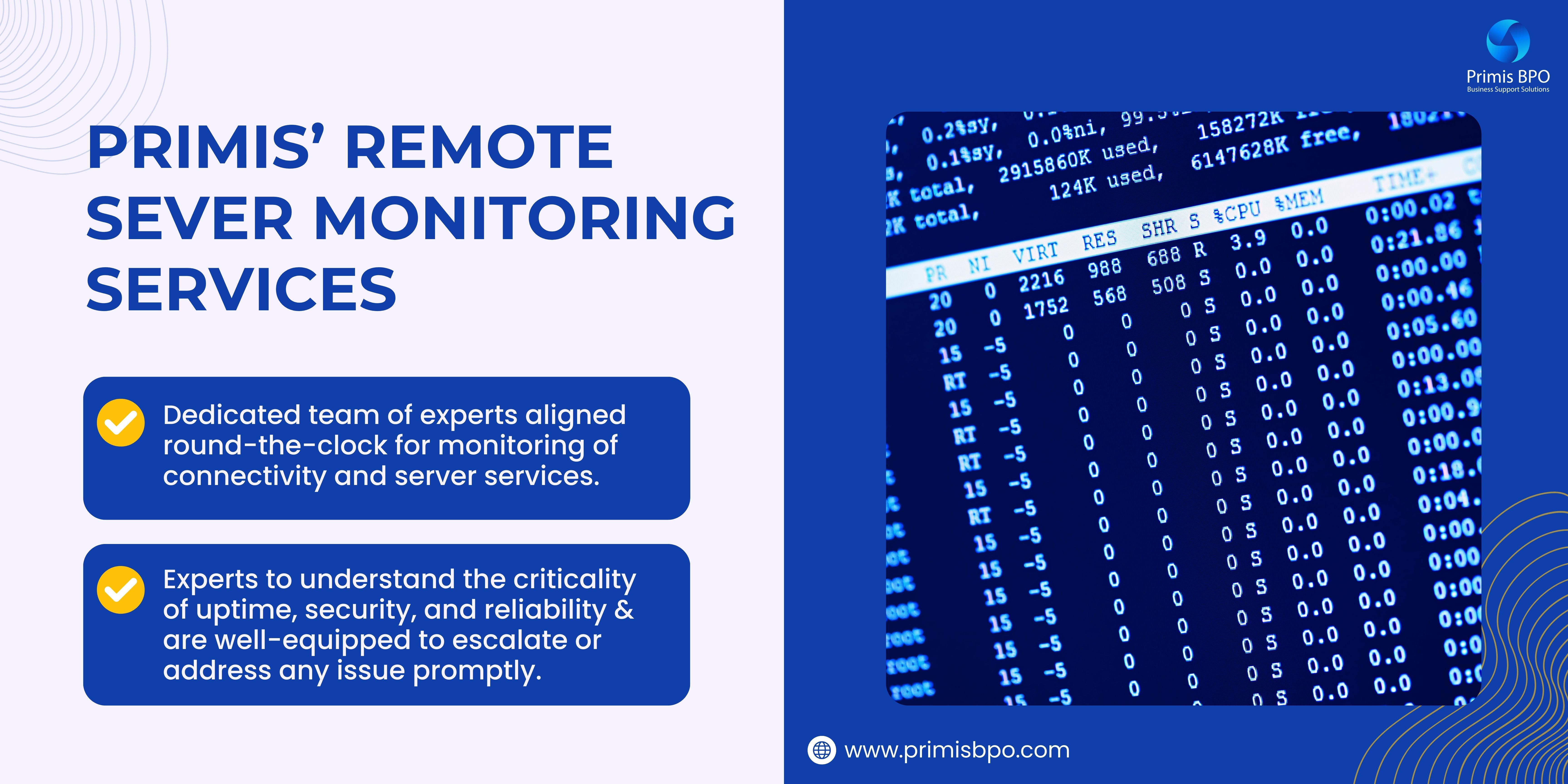 Looking for a reliable third-party provider for your remote server monitoring services? Get in touch with Primis. We will handle the rest!