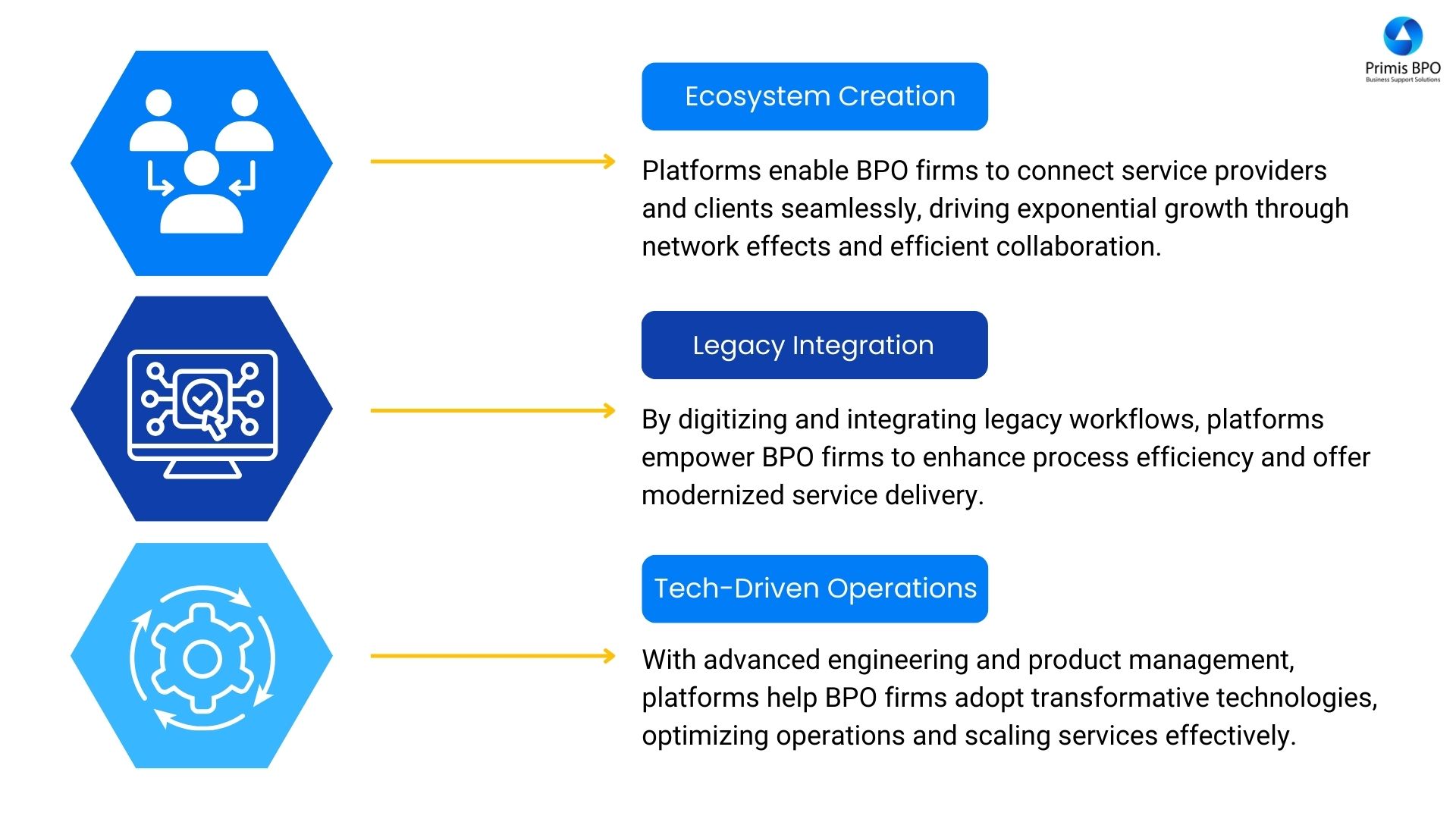 BPO firms handle complex processes for industries like insurance, healthcare, legal, etc. These sectors demand precision, speed, and adaptability. A platform-based delivery model equips BPOs to meet these demands while staying ahead of industry disruptions.